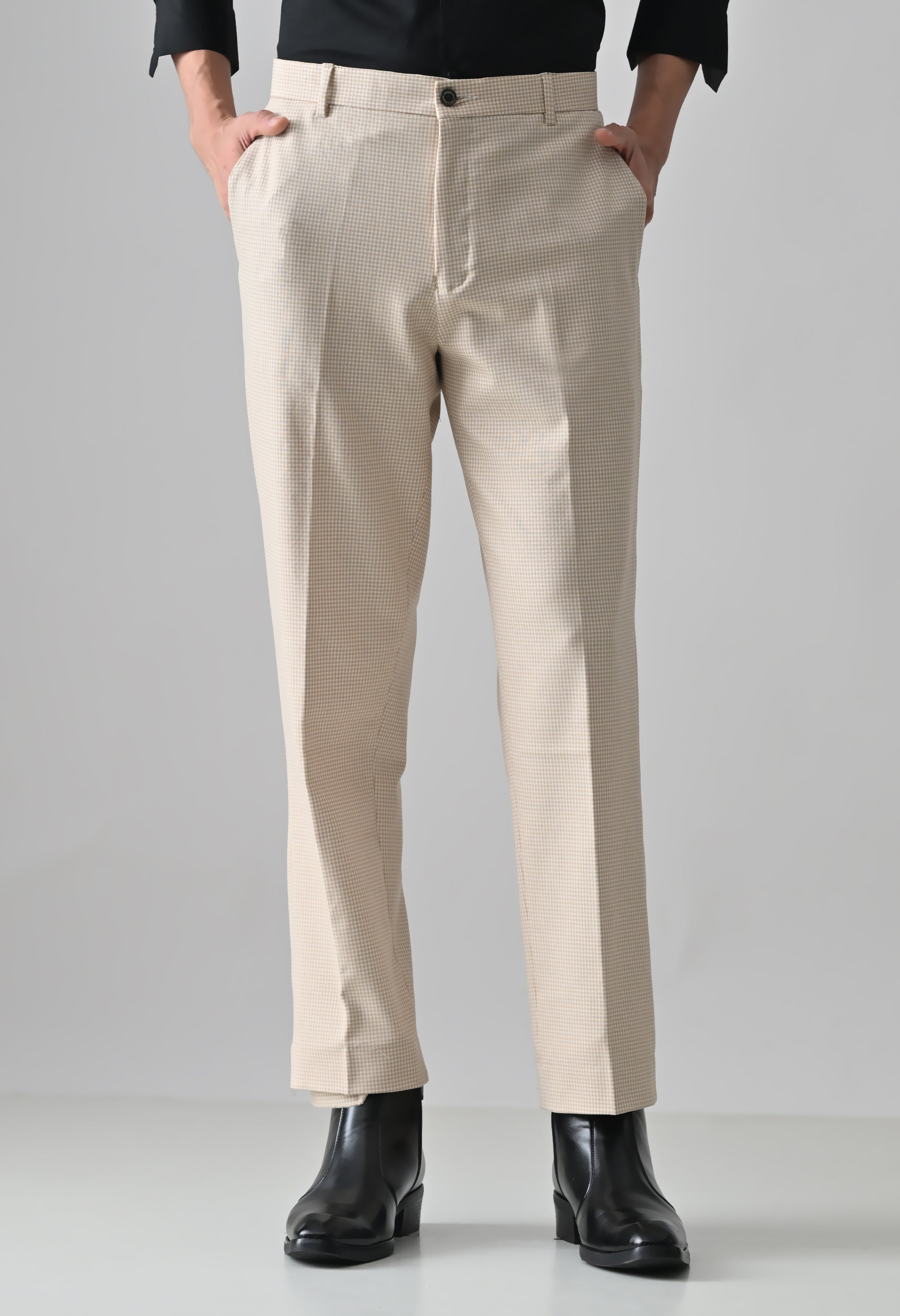 BEIGE Check Formal Trouser - Premium poly viscose | Comfortable Mens Pants