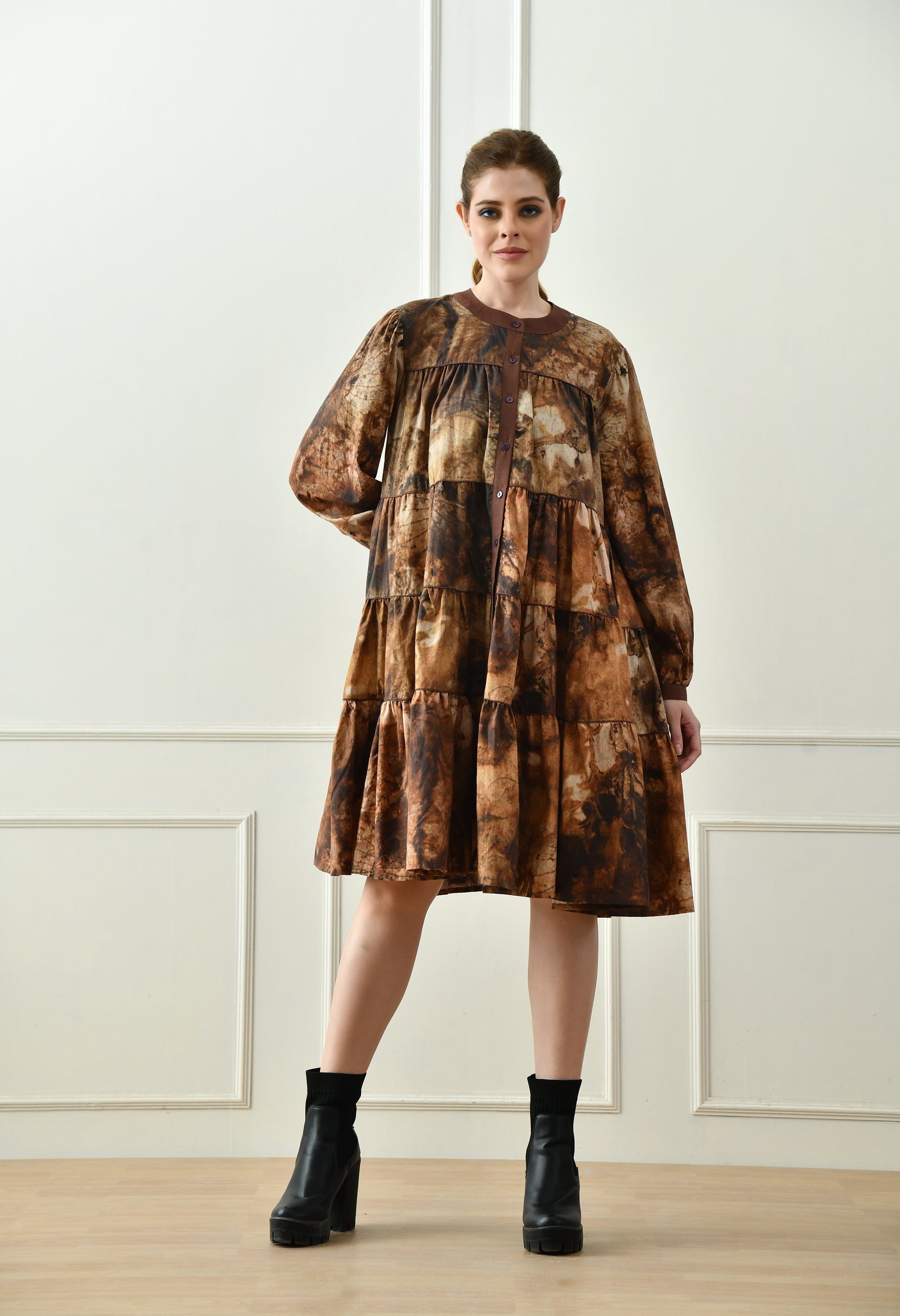 Step into effortless sophistication with this stunning earth-toned tiered dress that celebrates the beauty of natural hues and contemporary design. Crafted for the modern Indian woman who values both comfort and style, this dress is a perfect fusion of traditional grace and contemporary flair.