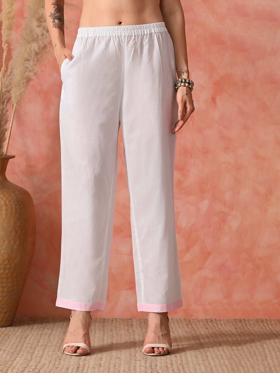 The Complete Look: Paired with matching crisp white straight-fit trousers for a clean, sophisticated silhouette.