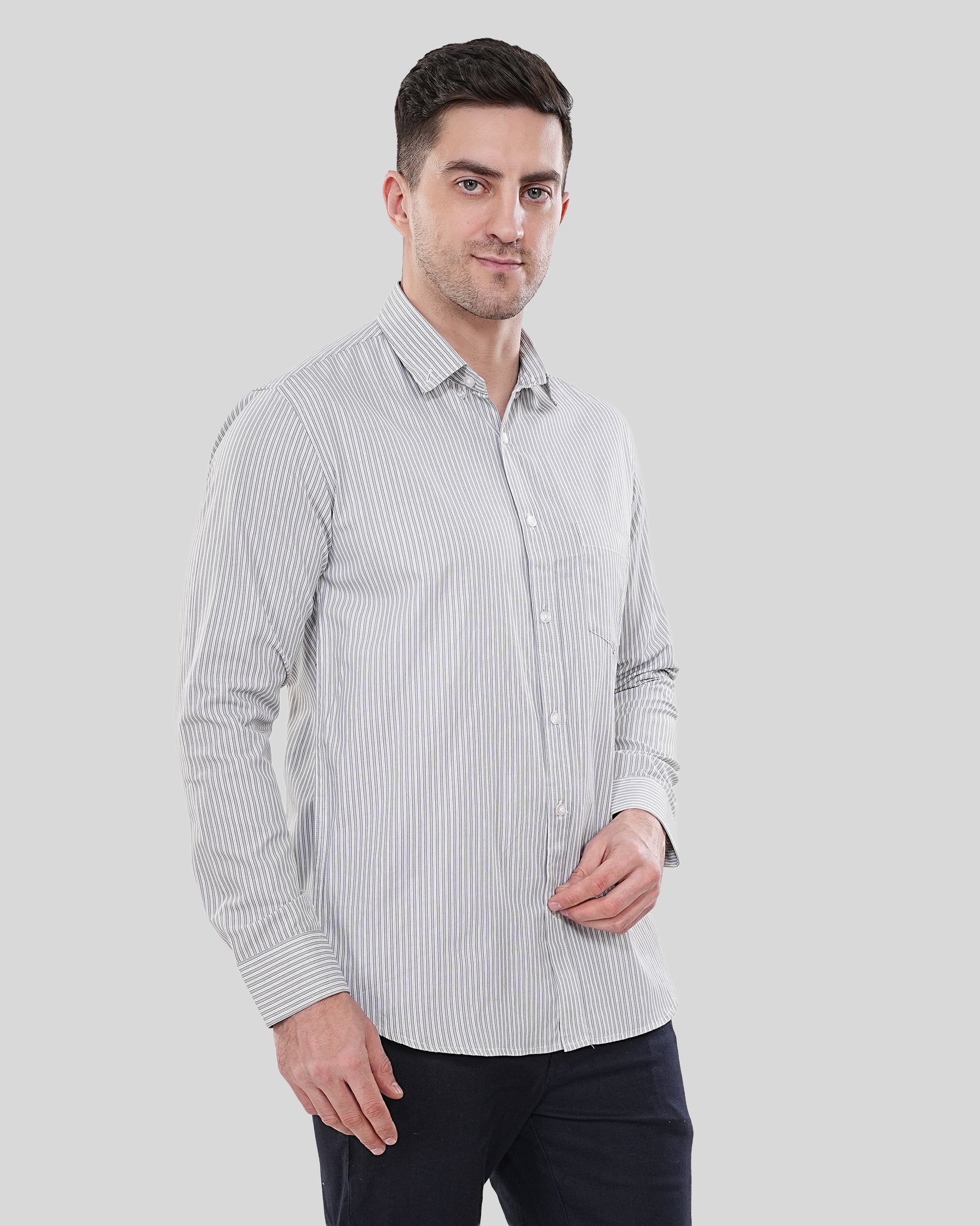 Signature Details: Equipped with a crisp button-down collar and polished white buttons for a clean, high-contrast aesthetic.