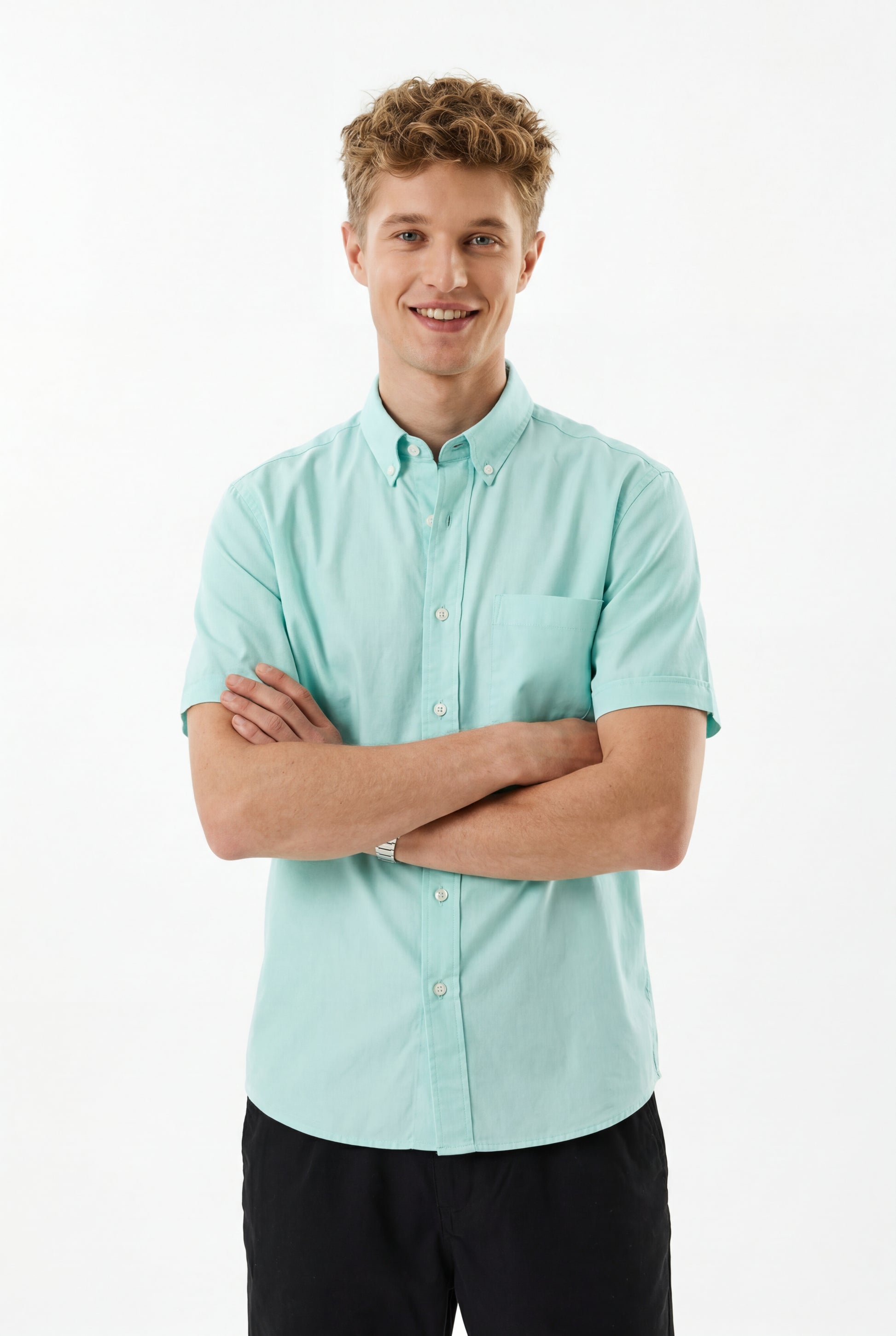 The fresh sea green colour looks very smart in person and the shirt feels comfortable even after long hours. The look is polished without feeling too formal, so it works really well for office wear. The material feels soft after wash as well.