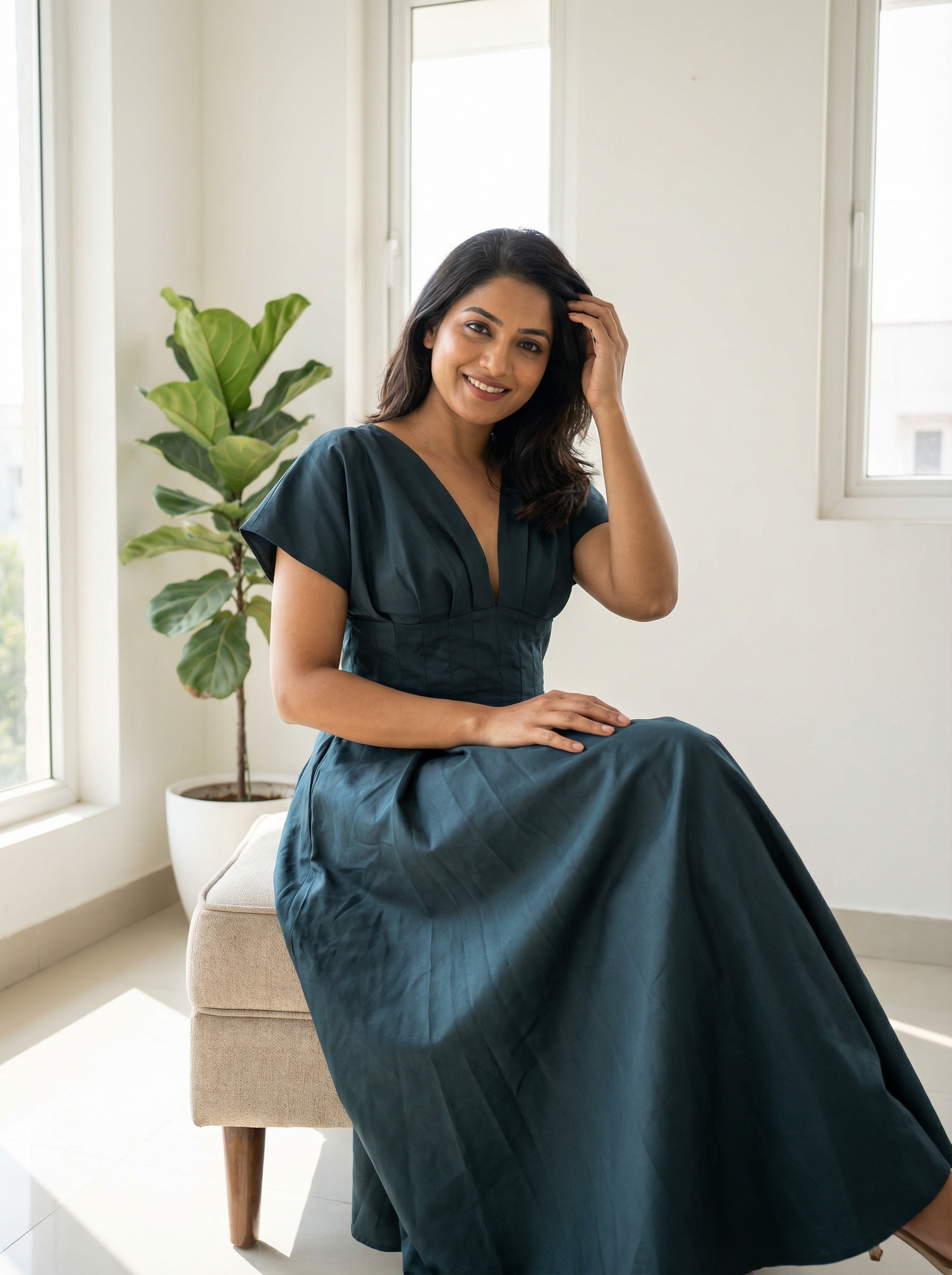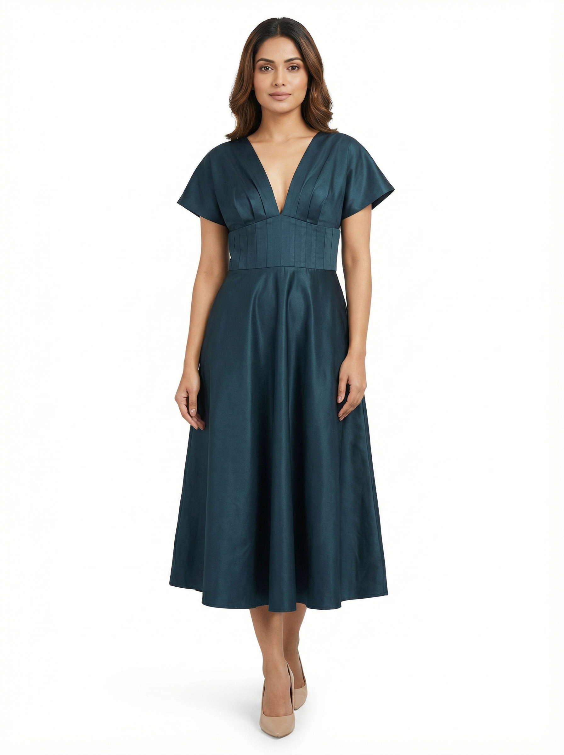 Command the room with the Seraphina Sculpted Midi, a masterwork of dramatic lines and high-fashion tailoring. This dress is designed for the woman who wants to make an unforgettable entrance, blending a daring architectural silhouette with timeless evening elegance.