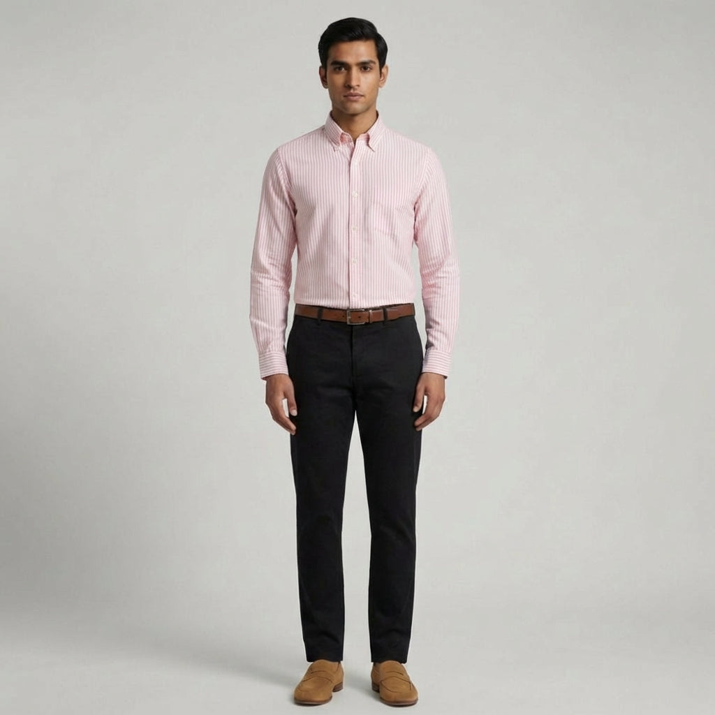 Super Premium Slim Fit Pink Striped Oxford Shirt