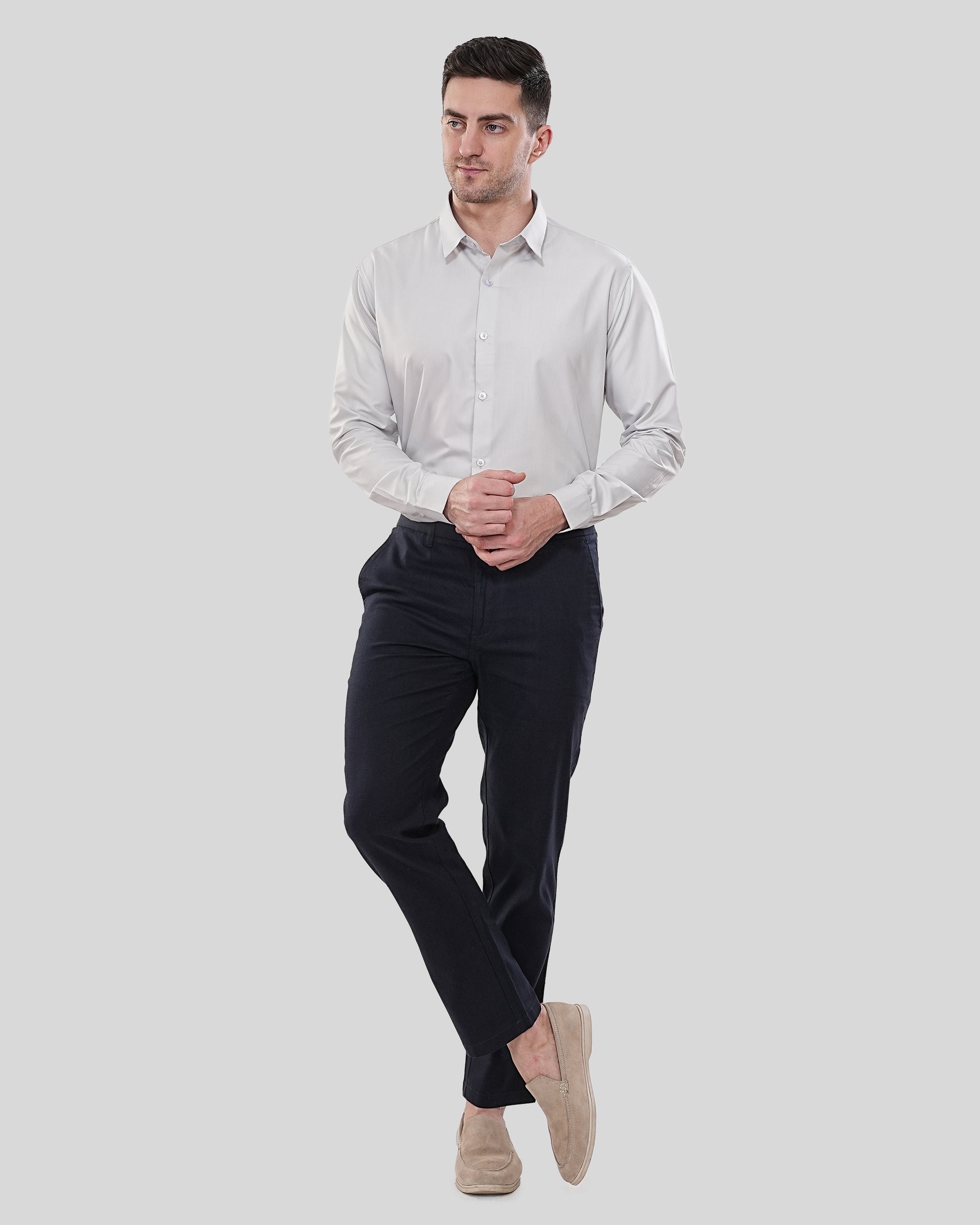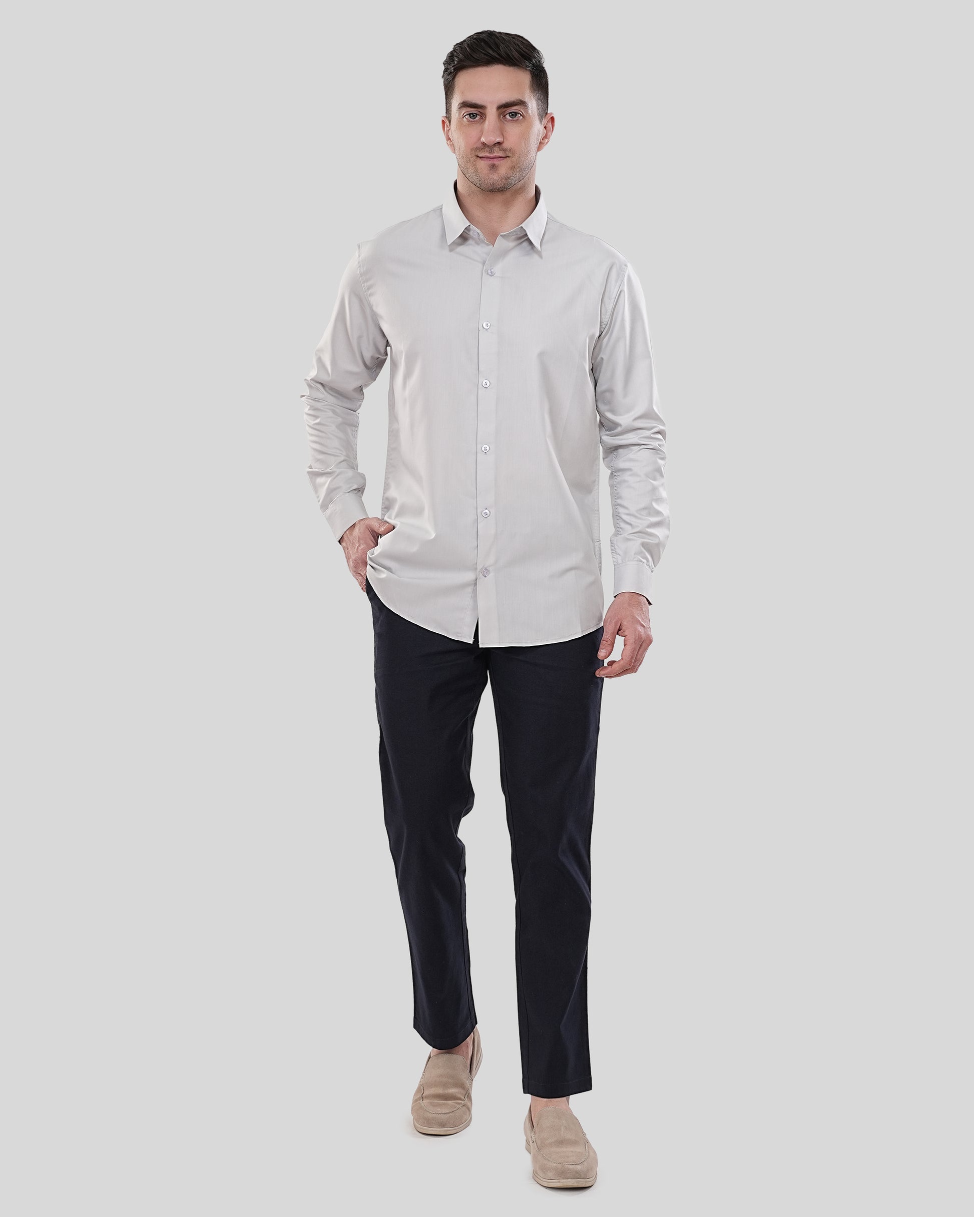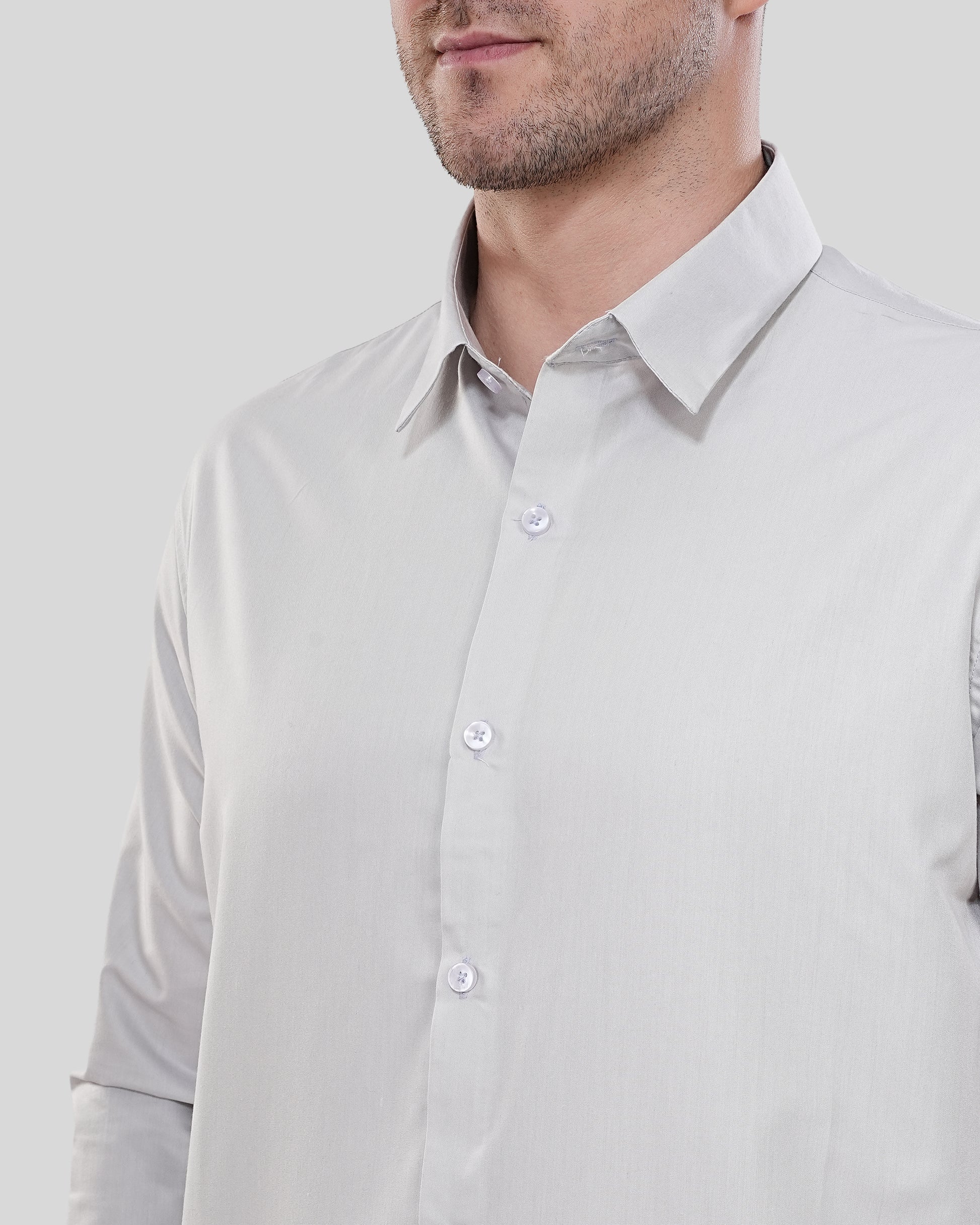 Elevate your professional rotation with our Silver-Grey Executive Shirt. Designed for the man who demands a razor-sharp silhouette without compromising on all-day comfort, this shirt features a refined cool-grey hue that serves as a versatile alternative to standard white.